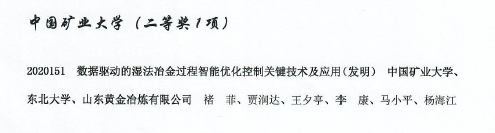 褚菲副教授作为第一完成人的项目“数据驱动的湿法冶金过程智能优化控制关键技术及应用”获得2020年度中国有色金属工业科学技术技术发明二等奖。