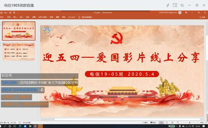 电子信息类19-5班举办“迎五四-爱国影片线上分享”主题团日活动