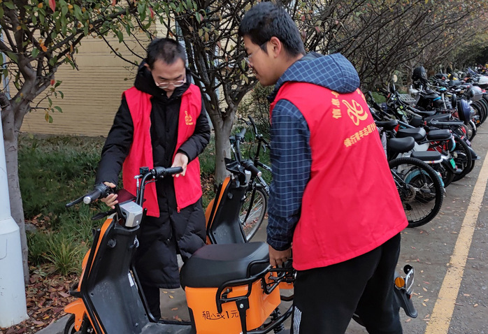 为了提升校园整洁度,美化校园环境。针对车辆倾倒、不规范停放等现象电子信息类20-09班团支部于11月22日进行了整理校内单车的工作。