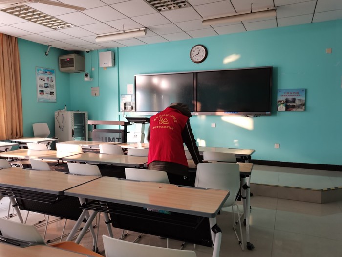 为了顺利开展本次活动,负责人们在活动开始前,前往博五楼A区需要打扫的教室进行实地考察,规划好分组数量及人员分配,并对活动进行了具体的要求。11月29日上午7时,本次活动正式开始。每组的小组长首先清点本组的人数,然后给自己的组员分发卫生工具,在准备妥当后,各小组组长带领组员去往分配到本组的工作区域,所有同学按照本组小组长提前分配给自己的任务开始志愿活动,最后,团支部负责人带各组小组长进行扫尾工作,检查工作完成质量。确定没有问题后,联系监督人员验收成果。