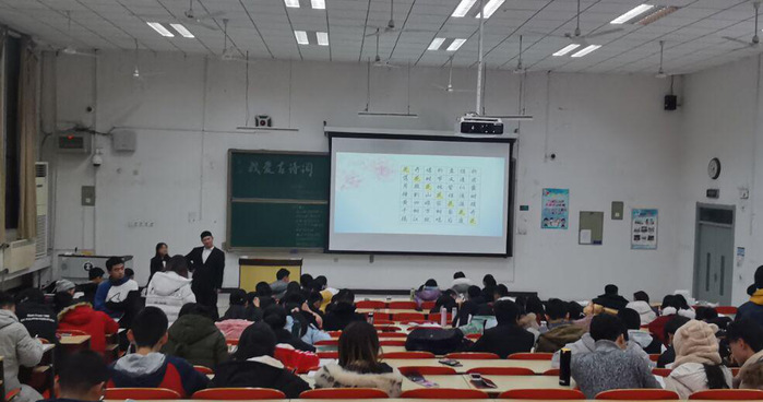 经过前期初赛的激烈比拼,共有36组选手进入决赛。决赛共分为“飞花令”“名句找茬”“诗词接龙”和“诗词创作”四个环节,要求选手们不仅要有丰富的诗词积累量,还要熟悉诗词名句的创作背景。各组参赛者答题中进行了激烈地讨论,努力回忆自己所学的诗词名句,认真作答。巧妙的配合与敏捷的反应充分展现了同学们对诗词的热爱以及团队之间的默契。最后,举办方收集各组选手的答题纸并进行评分。