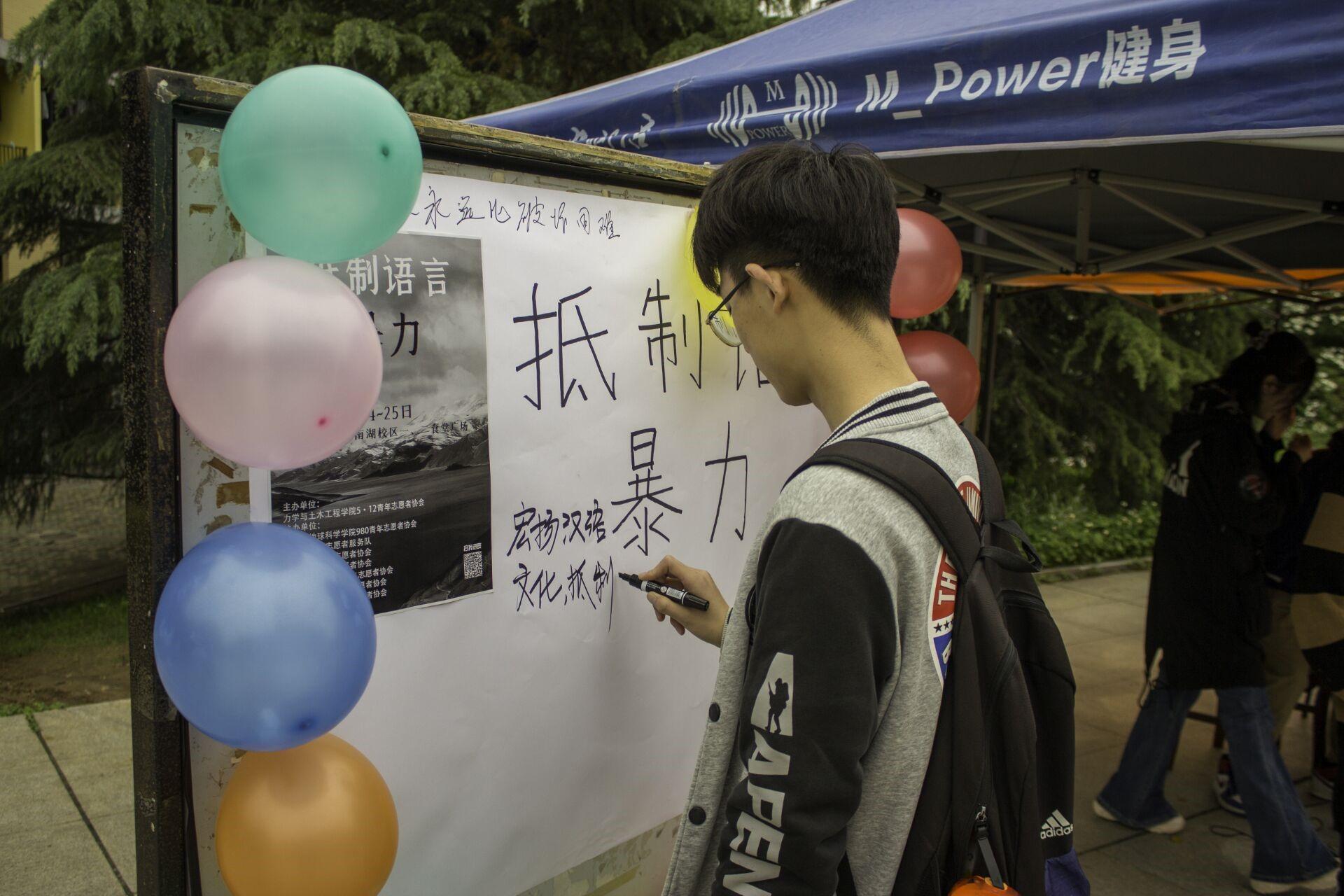 青年志愿者协会积极参与“抵制语言暴力”校级志愿活动。