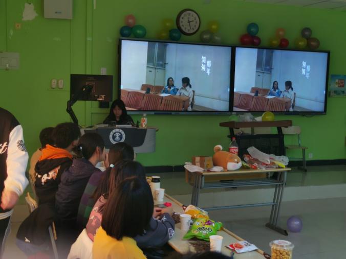 同学们认真观看纪录片