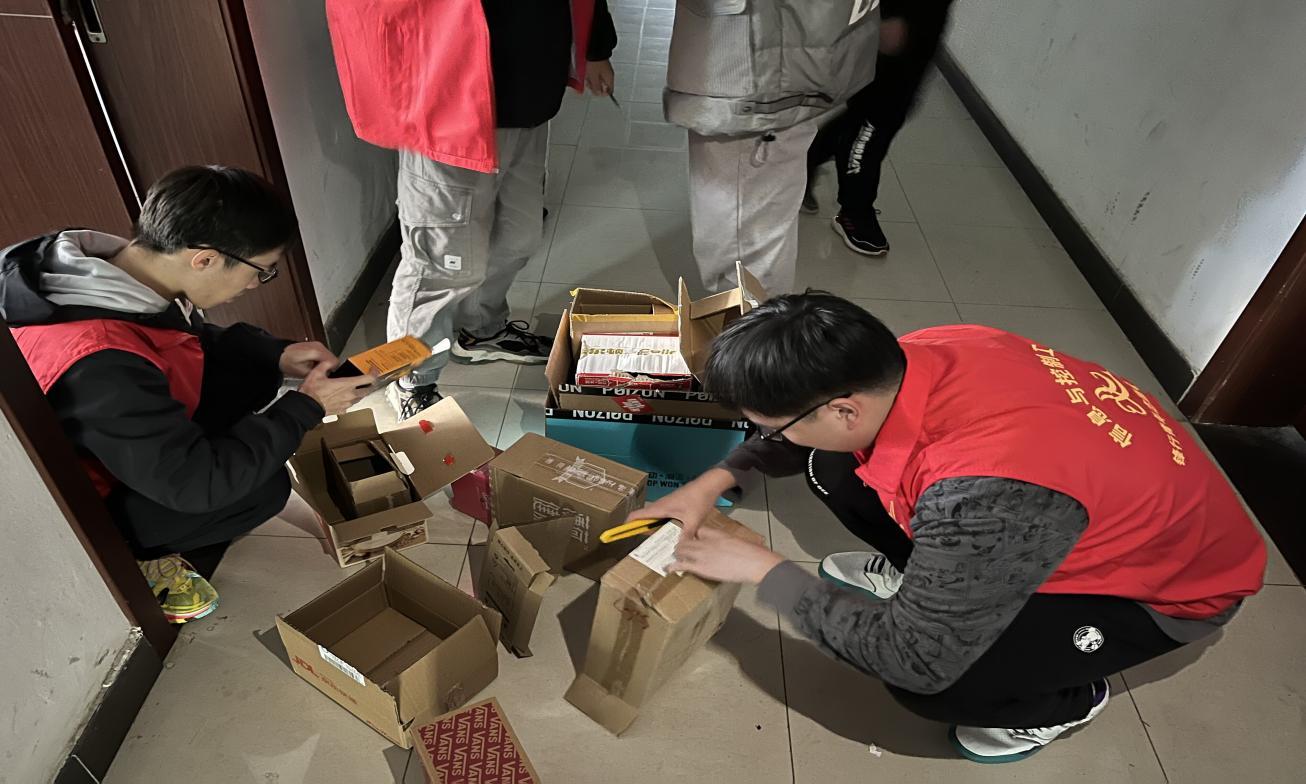 本次活动在桃苑2号楼和松苑2号楼内进行。根据宿舍分布情况,活动人员分成六组,其中男生负责桃苑2号楼,女生负责松苑2号楼。本次活动中,活动人员依次到各个宿舍回收废品纸盒并向同学们宣传火灾隐患的相关知识。收集完成后,活动人员将纸盒进行拆分、堆叠,最后在宿舍管理员的帮助下将纸盒出售给废品回收站。本次活动所得钱款将全部捐献给慈善机构。