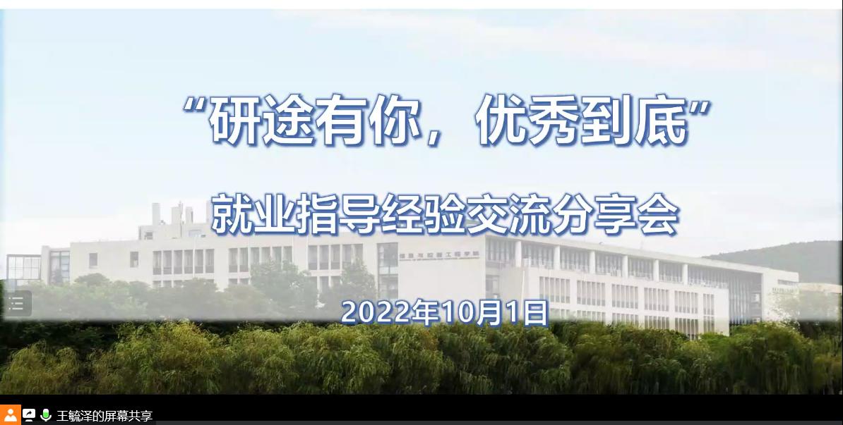 研究生会主办,邀请了胡杨明、洪啟强、俞健这三位优秀的毕业生学长,采用线上会议的方式为学弟学妹们做就业经验分享。
