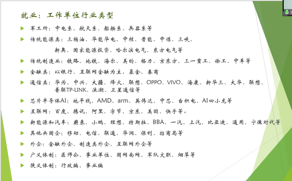 首先,主持人王毓泽代表大家向祖国送上生日祝福,祝愿祖国繁荣昌盛,国泰民安。随后胡杨明学长展开经验分享,从面试需要、自我经历的角度出发,向学弟学妹们传授如何在不到一年的时间内确定自己心仪岗位的方法。胡学长强调“打铁还需自身硬”,学好专业本领,全面性地修炼能力才是顺利就业的不二法门。之后本硕都在矿大求学的洪啟强学长为大家分析了就业的多样性,洪学长把就业的方向做了科学细致的划分,又耐心地为同学解答问题,面对就业岗位和就业城市的平衡问题,他更倾向于前者:“良禽择木而栖,有心仪的岗位就不要错过。”最后是俞健学长为大家分享,他首先展示了自己优秀的简历,从中大家深刻领会到了有过硬的实力和经历,也能轻松面对“卷”的就业环境。对于求职大厂,俞学长推荐大家多参与项目和实习,丰富自己的阅历和经验,合理安排好研究生生活,找工作的过程也是一个成长的过程。