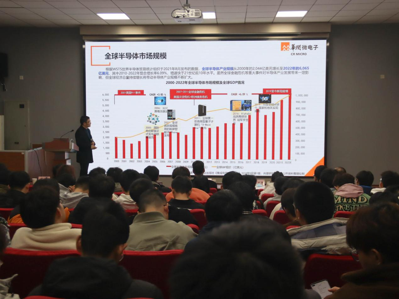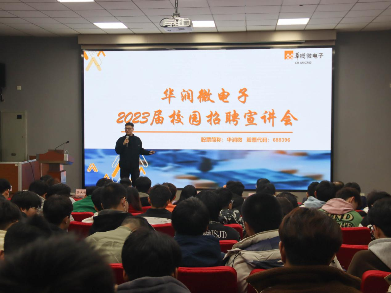 最后,华润微电子人事部负责人向同学们介绍了公司的人才培养与发展方案,以及公司的训练营活动、学习与创新中心,鼓励同学们进入华润微电子学习发展。