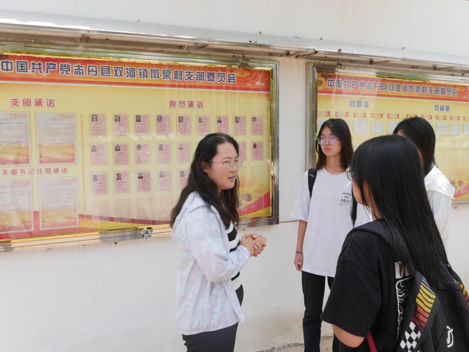 “追寻先辈足迹,传承红色精神”社会实践团成员前往延安市志丹县双河镇墩梁村开展暑期社会实践活动,与当地村支书刘喜兰进行交流,深入了解当地脱贫攻坚取得的成就。
