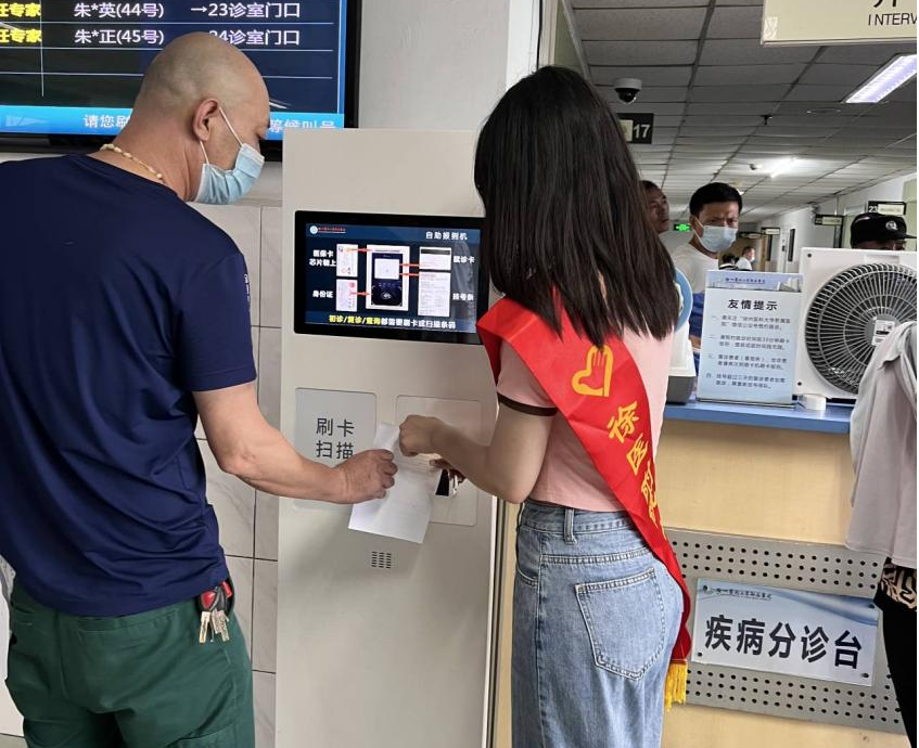 志愿者帮助患者报到排号