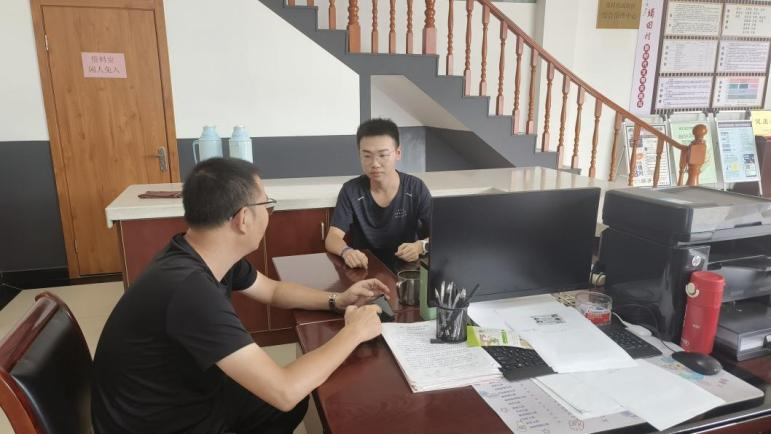 团队成员叶启凡前往安徽省黄山市歙县堨田村村委会参观学习。团队成员与黄山市歙县堨田村委副书记王鑫涛沟通交流,并与村中长辈谈论过去十年水质的变化,了解到堨田村正在积极开展水环境治理项目,铺设排污管道,完善村民的供水系统,同时加大对水环境治理的宣传力度,提高每位村民的环境保护意识。