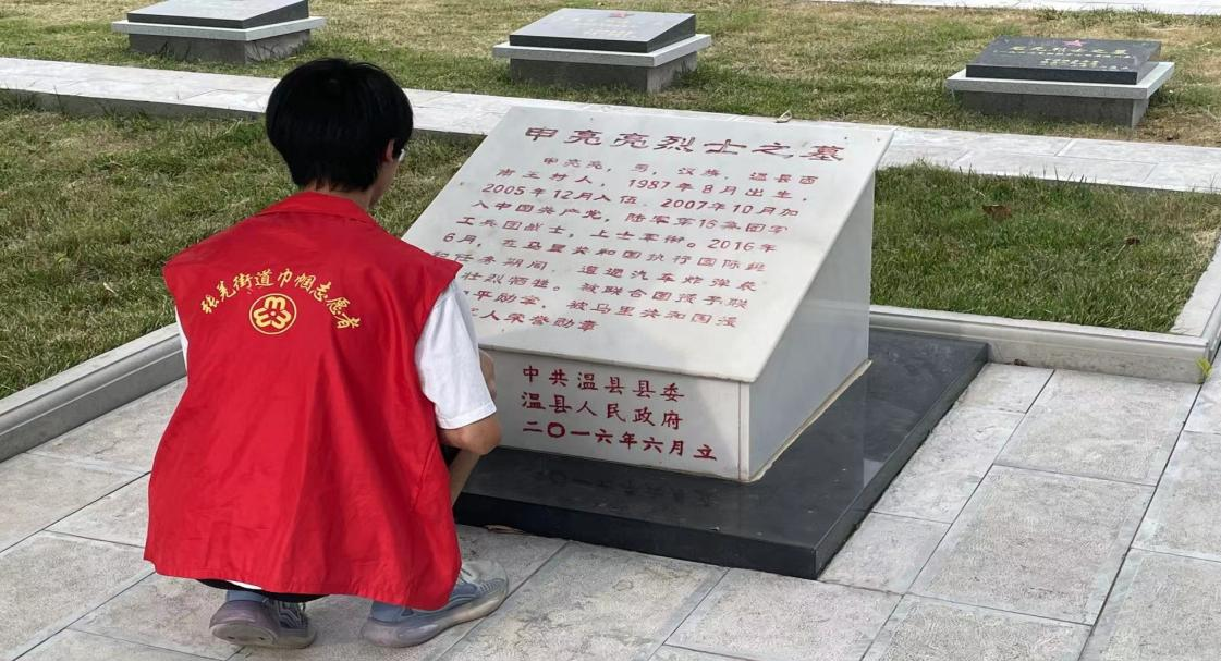 7月21日,团队前往温县烈士陵园,学习先烈的丰功伟绩。“维和英雄气贯长虹,中原赤子魂归故里”的故事让队员们潸然泪下,“人民英雄”申亮亮在马里维和期间为救战友而壮烈牺牲。队员代表范伊晨蹲在申亮亮烈士的墓碑正前与烈士墓碑零距离接触,感受先烈精神,烈士牢记军人使命,忠实履行军人职责,扬了军威,壮了国威,用忠诚和热血捍卫了军人的最高荣誉,是我们学习的时代楷模。