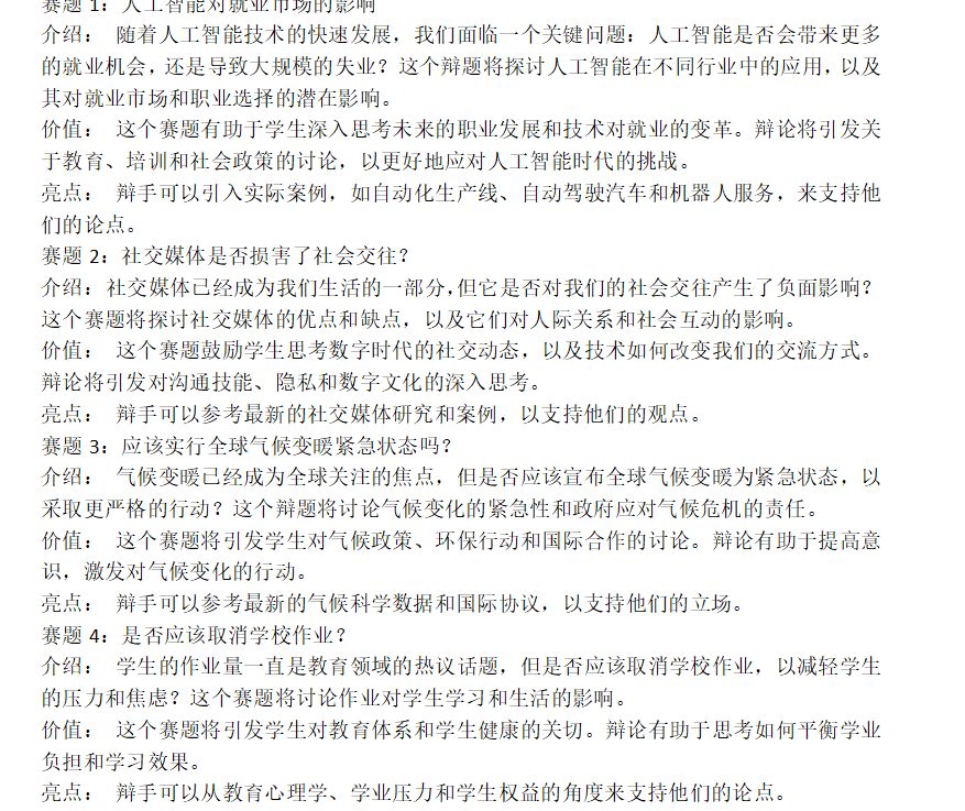 学生创作辩题