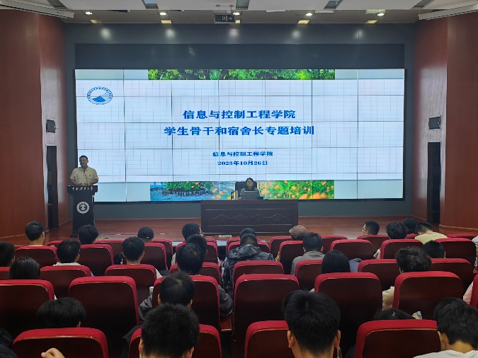 于信控楼A101报告厅举办心理健康工作培训会。校大学生心理健康教育中心张金健老师为学院2022级、2023级的班委、宿舍长做专题培训。培训会由学院辅导员主持。