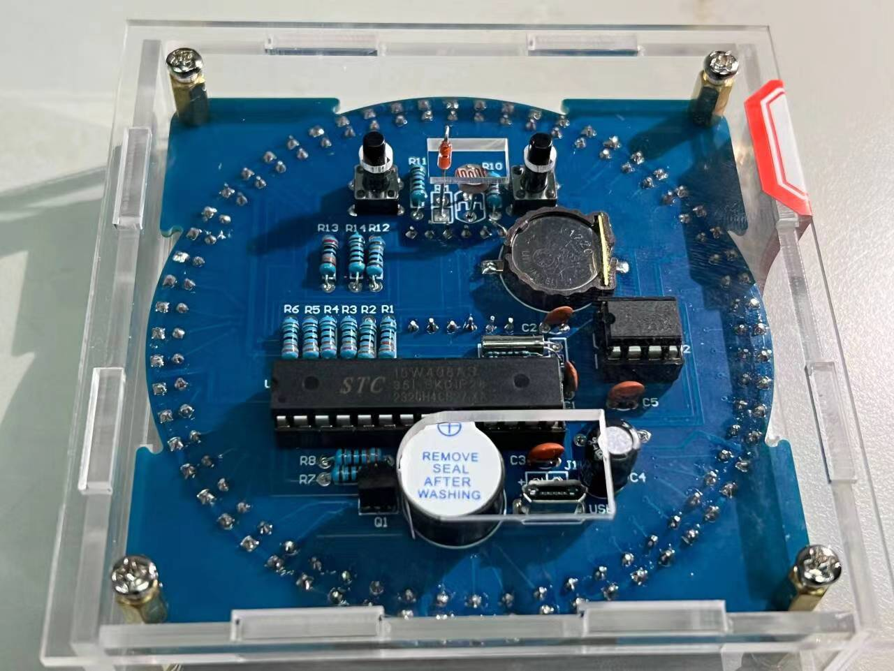 锋行青年志愿者协会科技服务部借用焊接实习专用实验室,为有需求的参赛者进行了焊接培训。初赛的比赛项目是电子数字时钟,20日前参赛队伍完成初赛作品的焊接,由评委对作品进行评审,并选拔进入决赛的队伍或成员。决赛项目为制作LED五角星呼吸灯,须在29日13时前完成。评审人员按照评分标准进行打分,最终于12月1日评选出获奖队伍。