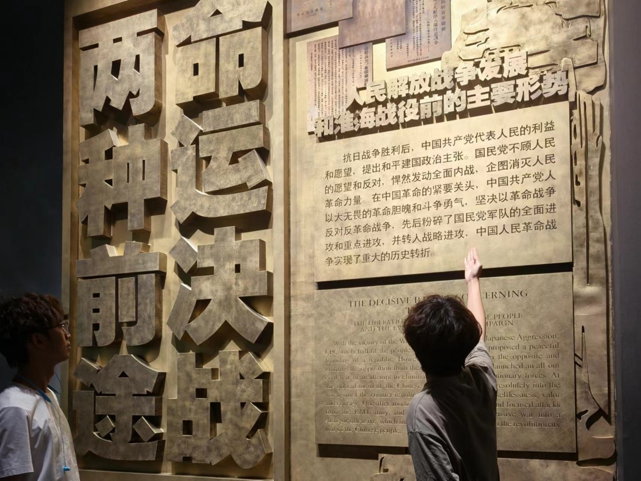 当天下午,实践团成员怀着崇敬的心情来到了淮海战役纪念馆,参观了纪念馆的展厅。通过观察这些与淮海战役相关的历史文物、图片、图表和文字资料,实践团成员了解到战士们使用过的武器装备、生活用品,以及他们在战场上的英勇事迹,深入认识了淮海战役的背景、过程和重要意义。成员们对解放军的智慧和勇气表示敬佩,也对他们为了国家和人民的解放事业所做出的巨大牺牲感到由衷的感激。此外,纪念馆还通过多媒体展示、场景还原等形式,让实践团成员更加直观地感受战争的氛围。在参观过程的最后,每位成员选出让自己感受最深的一部分与其他成员进行交流,分享自己的心得与感悟。成员们产生思维的碰撞,对淮海战役的历史与人民解放军英勇无畏、艰苦奋斗、众志成城的精神有了更深刻的体会。