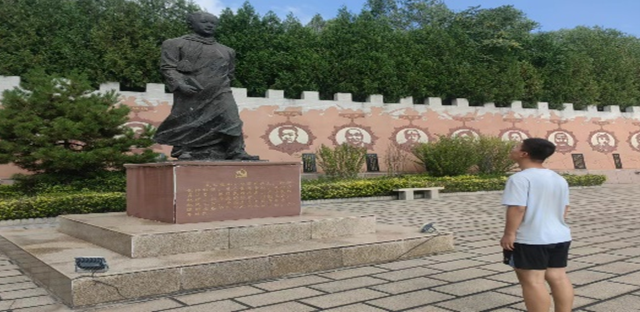 7月28日,在村委书记的带领下,团队先后参观了村口矗立的纪念碑、袁致和同志的立像和以袁致和同志命名的致和园等地,了解到瓦窑头村的红色文化在当时的高平市留下了浓墨重彩的一笔,对整个高平市人民的红色思想起到了至关重要的启蒙作用。随后,他们与村内一位老人进行交流,深入了解整个村子的历史。7月30日,团队成员再赴瓦窑头村,参观红色文化纪念馆与烈士陵园,了解瓦窑头红色文化的起源与发展并在袁致和同志纪念碑和烈士陵园前献花,致敬先烈。