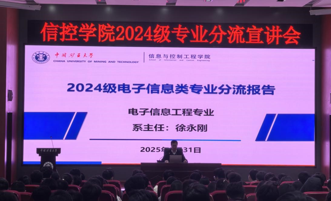 在学院楼A101报告厅召开电子信息类专业分流宣讲会。学院副院长刘海、电子信息系主任徐永刚、自动化系主任曹丙花及2024级电子信息类学生参会。