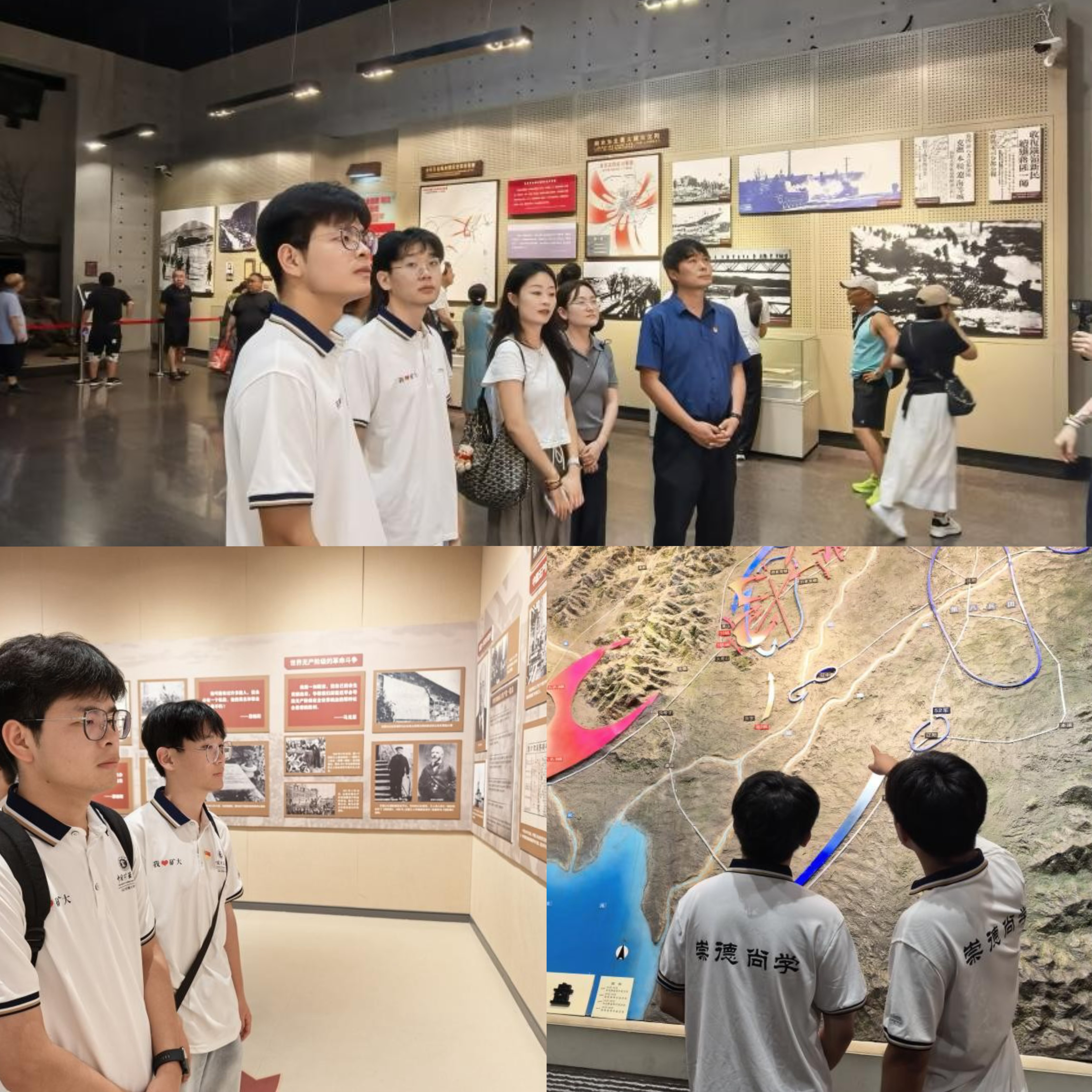 7月16日,实践团全体成员怀着无比崇敬的心情,走进平津战役纪念馆。在恢弘的展厅内,一幅幅定格历史瞬间的图片、一件件历经战火洗礼的旧物、一幕幕运用前沿技术复原的战役场景,将党中央运筹帷幄、决胜千里的雄才大略,以及人民解放军将士英勇无畏、浴血奋战的壮烈史诗,全方位、立体化地呈现在师生面前。在讲解员的带领下,师生们驻足参观学习,我们党在平津战役中“打、谈、等”的战略艺术,16岁革命战士钟银根“四树红旗”的英雄事迹,我们党对平津名胜古迹和高校的保护……历史的厚重感与革命的炽热情怀在胸中激荡,引人深思。实践团师生充分利用这一鲜活课堂,现场录制了主题思政课视频。他们以馆藏文物为生动教材,以英烈事迹为感人案例,将厚重的革命历史转化为直抵人心的育人资源,并向来馆游客、兄弟高校大学生和小学生讲述了淮海战役革命故事,形成了一堂别开生面的大中小一体化思政微课。