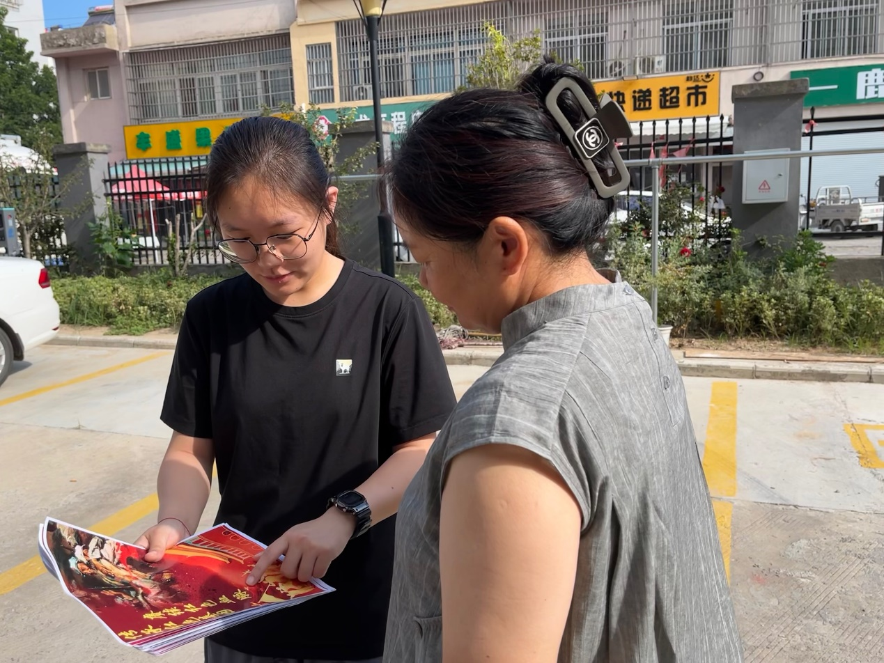 7月20日,实践团成员前往淮海战役纪念建筑群,瞻仰烈士纪念塔,并向烈士默哀致敬,以表达对革命先烈的深切缅怀。随后,成员步入淮海战役纪念馆参观各个展厅,学习先烈英勇事迹,汲取坚韧不拔的红色精神。团队成员结合参观过程中的所见所闻所感,制作了一系列宣扬红色文化的海报。25日,成员在云龙区程庄社区的街头巷尾张贴、分发海报,同时向居民们讲述党的重大事件,帮助社区居民了解党的发展历程与历史成就。