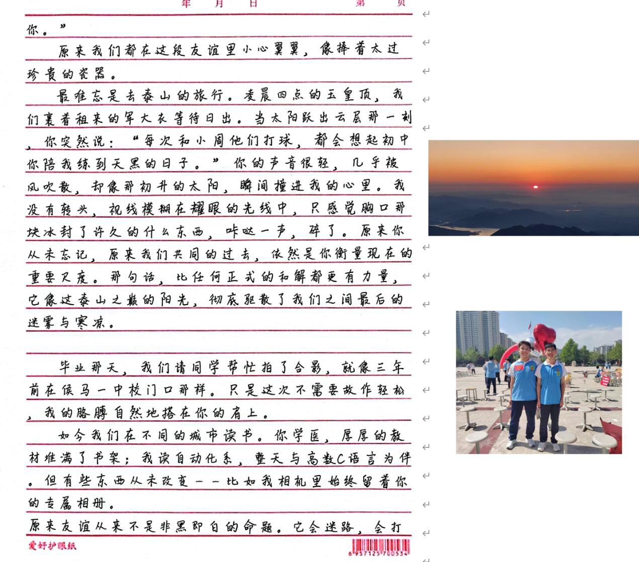 同学们踊跃参与此次活动,共有840名同学报名,462名同学提交了作品,评选出一等奖23组,二等奖40组,三等奖75组。同学们以书信、故事、图文等形式,用细腻笔触与真挚情感回顾与旧友的时光,抒发怀念之情,探讨友谊意义。这些作品传递出“友谊虽经时光打磨,情谊内核却历久弥新”的真挚情感,也唤起了大家对友谊的珍视。