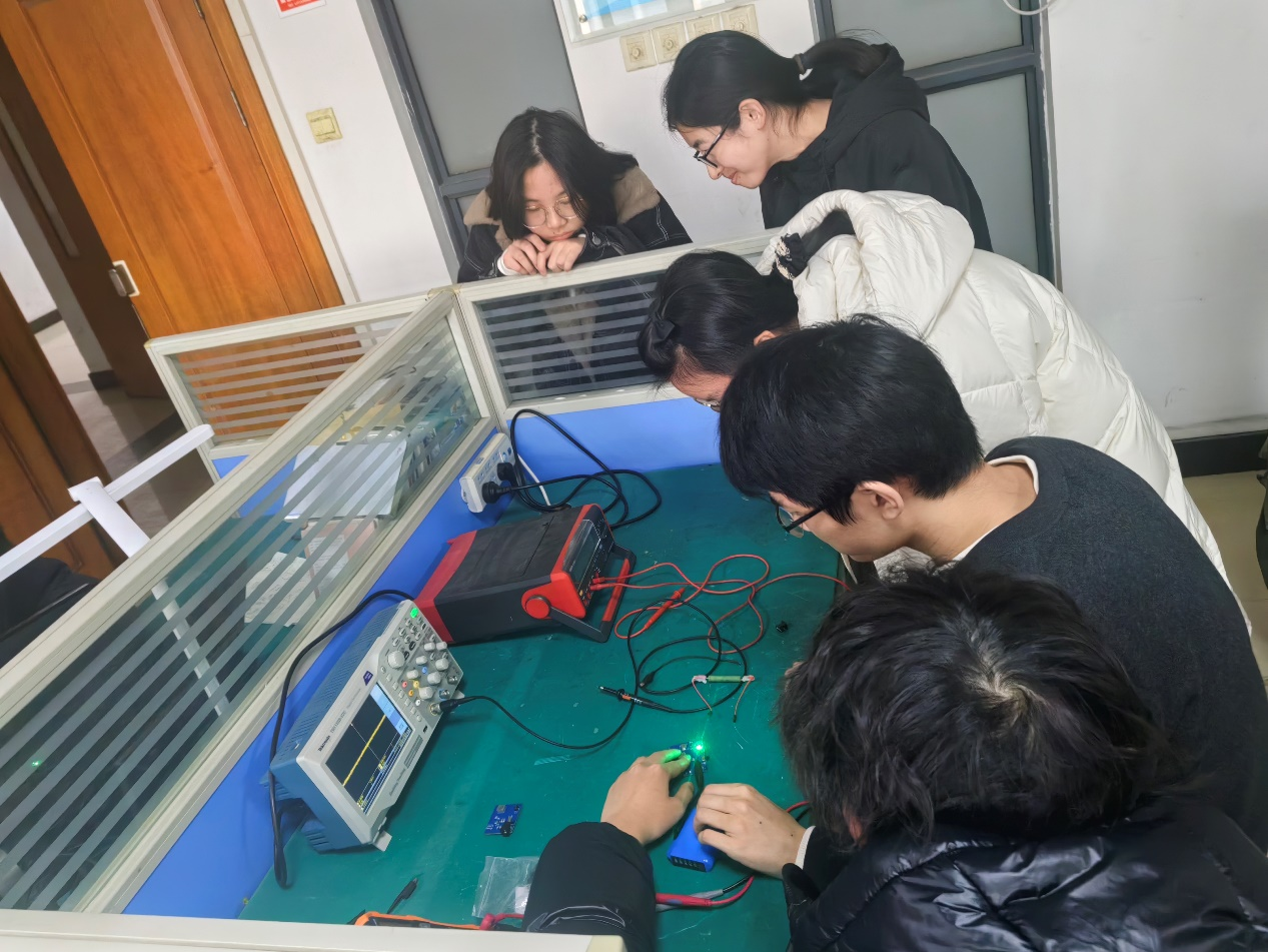 12月24日,复赛作品评审在信控楼A413举行。评审由袁小平教授主持,电子协会主席团协助。遵循公开透明原则,从电气性能、器件成本、焊接难易度等多维度考虑。测试同学使用万用表、示波器等设备完成参数测量,最终完成30支复赛队伍的评审打分工作。