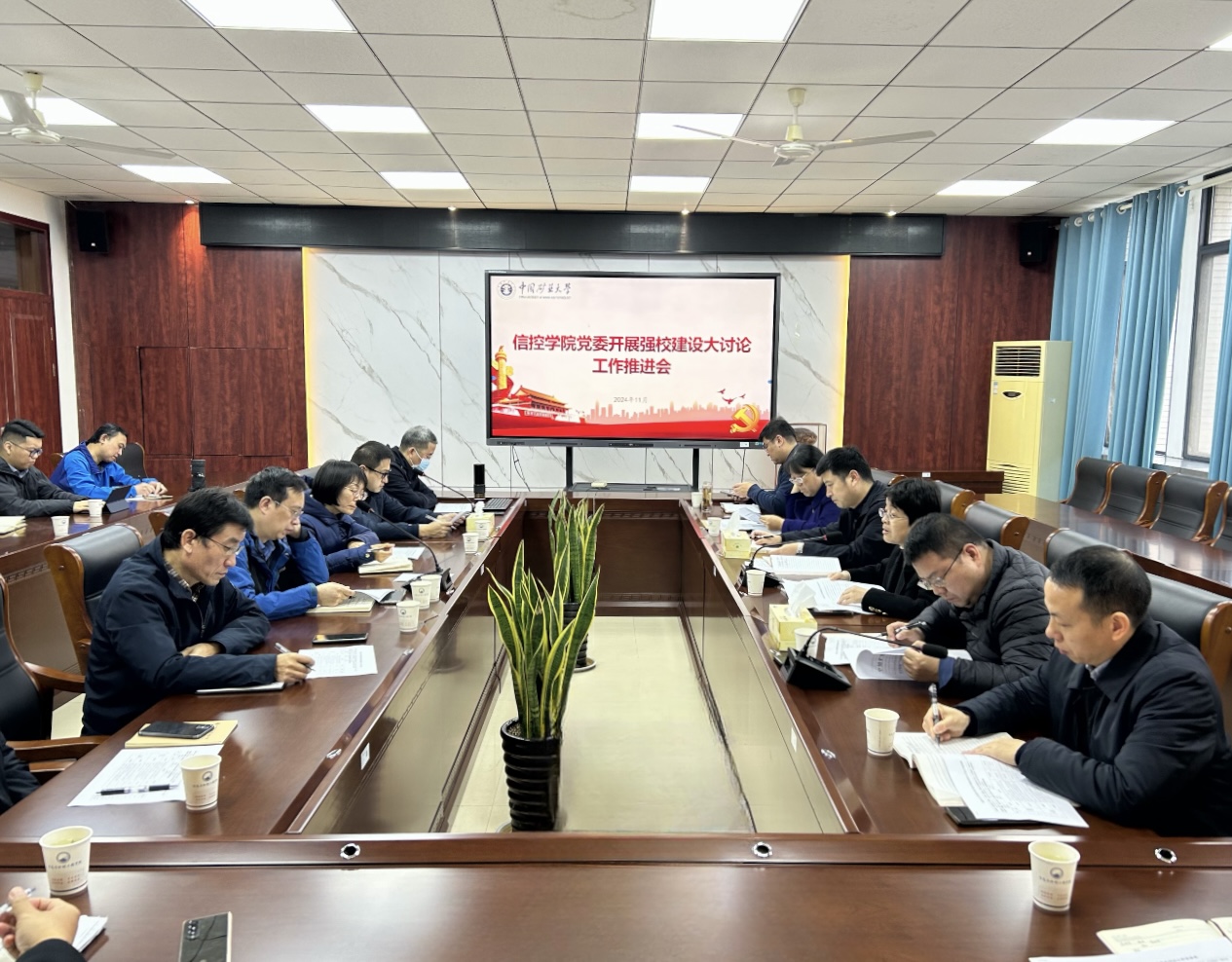 党委在A311会议室召开强校建设大讨论工作推进会。学院党委书记程德强,院长王雪松,党委副书记翟文艳,副院长刘海、陈平、代伟,物联网(感知矿山)研究中心副主任查振高,教师党支部书记、各中层机构负责人参加会议。会议由学院党委书记程德强主持。