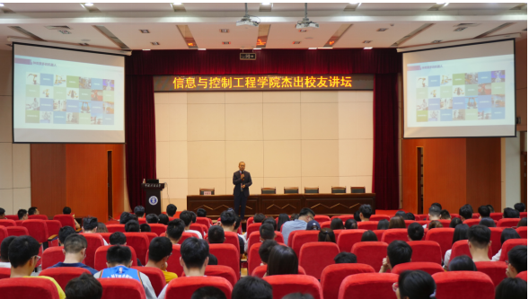 优秀校友许春山。据悉,许春山是江苏省双创人才、江苏省科技企业家、江苏省333工程培养人才、南京市中青年拔尖人才。首先,许春山向同学们介绍了机器人产业发展现状,让同学们详细了解了机器人产业真正的运营方式、专业背景等方面内容。随后,许春山还向同学们介绍了机器人产业未来的发展趋势,使同学们知晓如何将所学知识与社会生产实践所结合。最后环节安排了同学的提问,许春山校友认真回答了问题,讲座在轻松融洽的氛围中圆满结束。