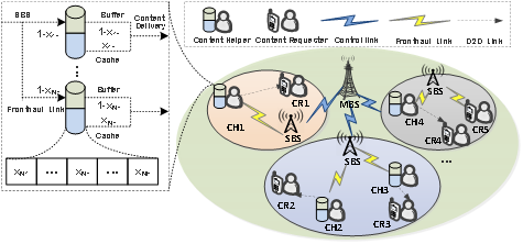 本文主要研究了社交工业物联网中的四个问题:预先缓存方案设计、分布式内容分发方案设计、奖励机制设计以及如何进一步优化匹配过程中内容协助者的效益。针对第一个问题,考虑到用户设备存储容量及传输范围的局限性,如果完整缓存全部内容可能会在一定时间内无内容分享请求,从而导致存储容量的利用率以及缓存命中率过低,假设用户仅缓存某一内容的一部分,通过缓存多种内容有效提升存储容量的利用率以及缓存命中率,当有用户请求内容共享时,可以充当中继节点利用缓冲能力将剩余内容发送给内容请求者。重点研究如何在存储容量受限的情况下,通过合理分配缓冲与缓存的比例,达到最小化传输损耗的目标。针对第二个问题,将内容分享方案抽象为三分图,提出一种三维稳定匹配算法,在内容请求用户,内容协助用户以及小型基站三者之间得到稳定匹配。针对第三个问题,提出了一种基于社交信誉度的奖励机制,在内容请求用户用户QoS与内容协助用户的能耗之间达到均衡。针对最后一个问题,提出了一种带有多米诺效应的匹配篡改机制,并通过格理论(Lattice Theory) 验证了该篡改机制“牵一发而动全身”的连锁效应。
