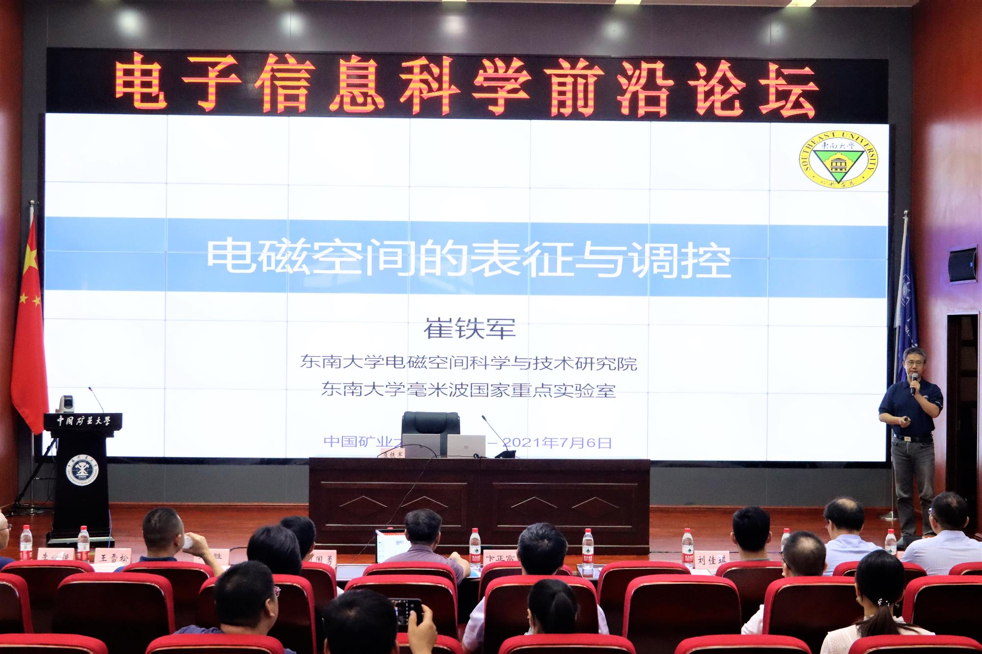 论坛上,崔铁军院士、夏明耀教授、项国勇教授、沈钟祥教授、丁国如教授、江伟教授、孙胜教授分别做特邀报告,共同探讨电子信息领域的科学问题、前沿热点、技术挑战和国内外最新研究进展,激发创新思想,现场气氛活跃。