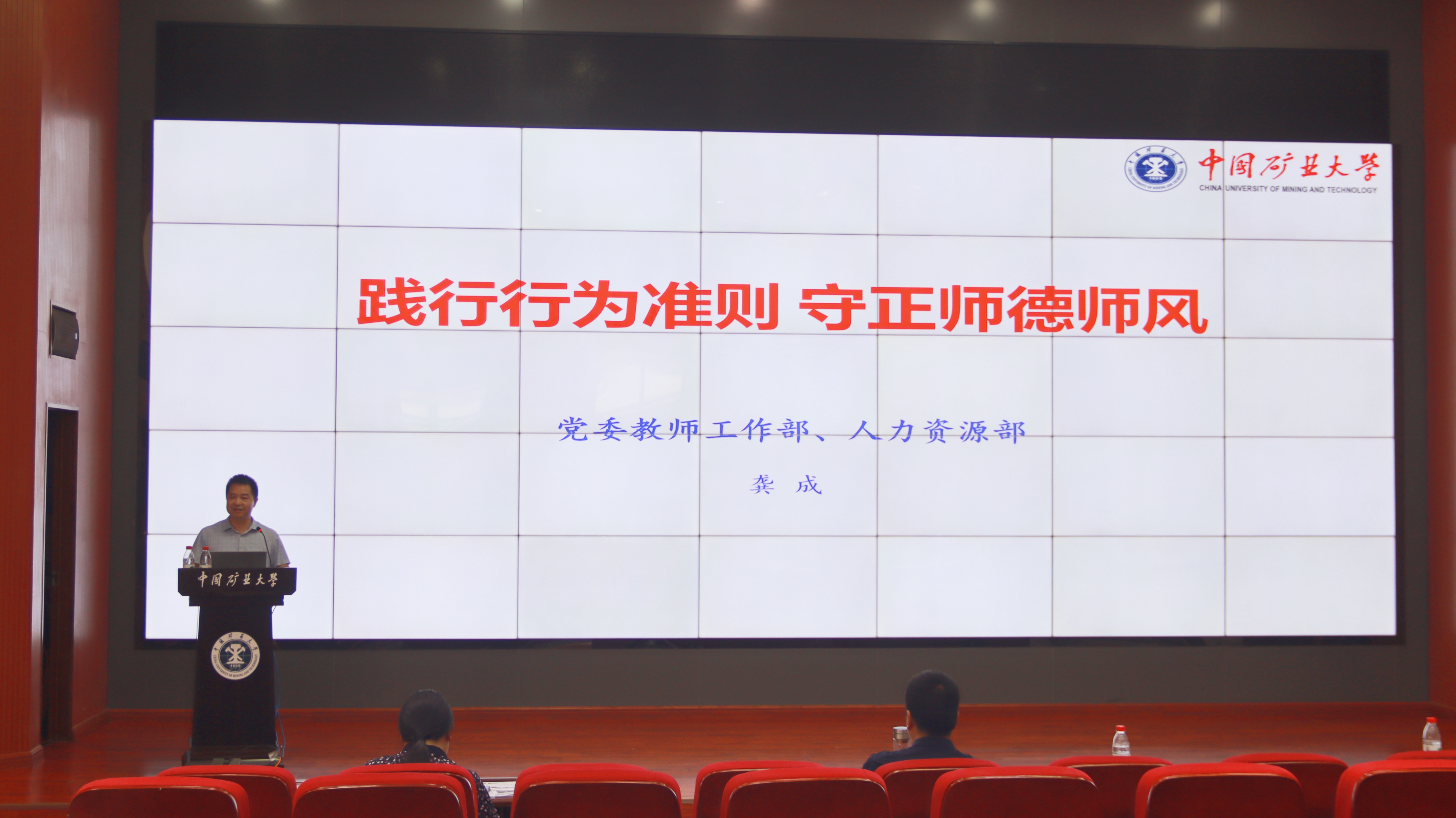 在学院楼A101报告厅举办师德师风建设专题报告会。校党委教师工作部、人力资源部副部长龚成以《践行行为准则,守正师德师风》为题作专题报告。学院领导班子全体成员出席报告会,学院全体教职工参加报告会。报告会由学院党委书记程德强主持。