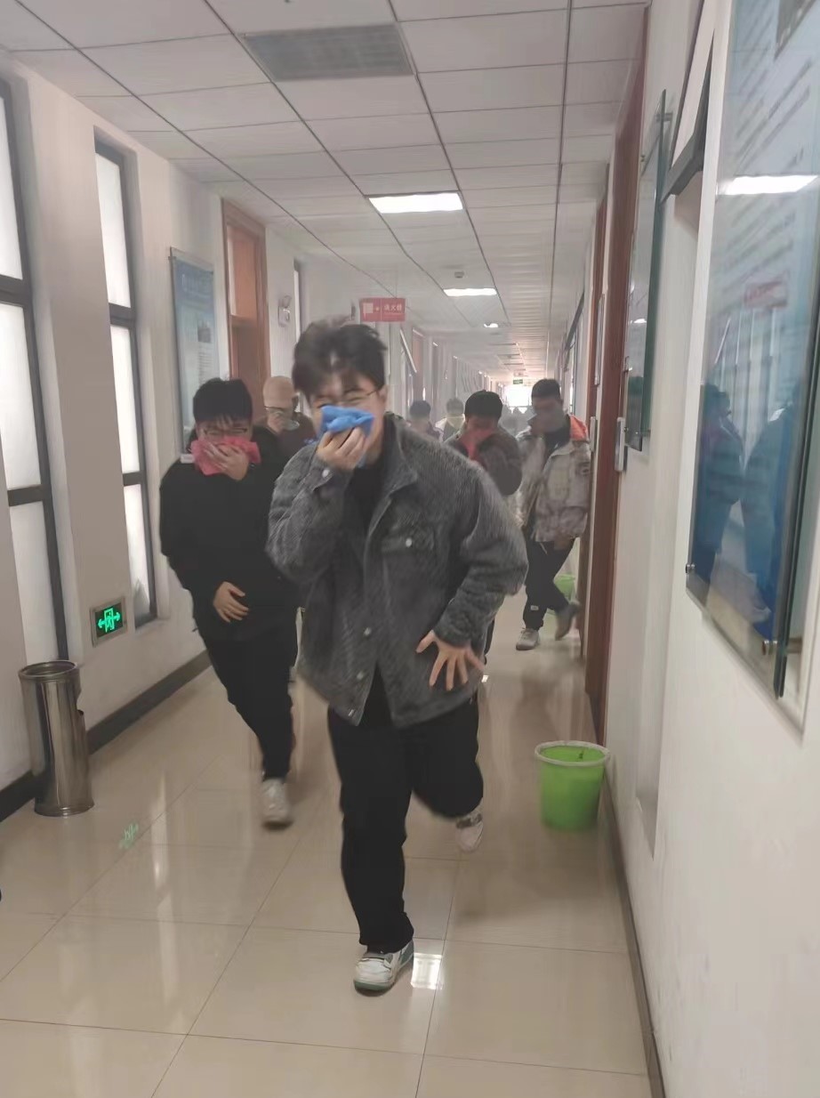 活动前,保卫处王锐老师讲解了办公室、实验室突发火情的逃生注意事项及急救知识。依据真实场景,在各个楼层模拟释放烟雾并拉响警报,各岗位人员迅速响应,学院应急疏散引导员按照制定的预案迅速组织师生疏散逃生。师生用湿毛巾捂住口、鼻,按照应急疏散指示标识和既定的应急疏散路线,有序地疏散到楼外安全区域。活动结束后,实验中心主任张晓春对本次演练进行点评,并向师生介绍消防知识、逃生知识。
