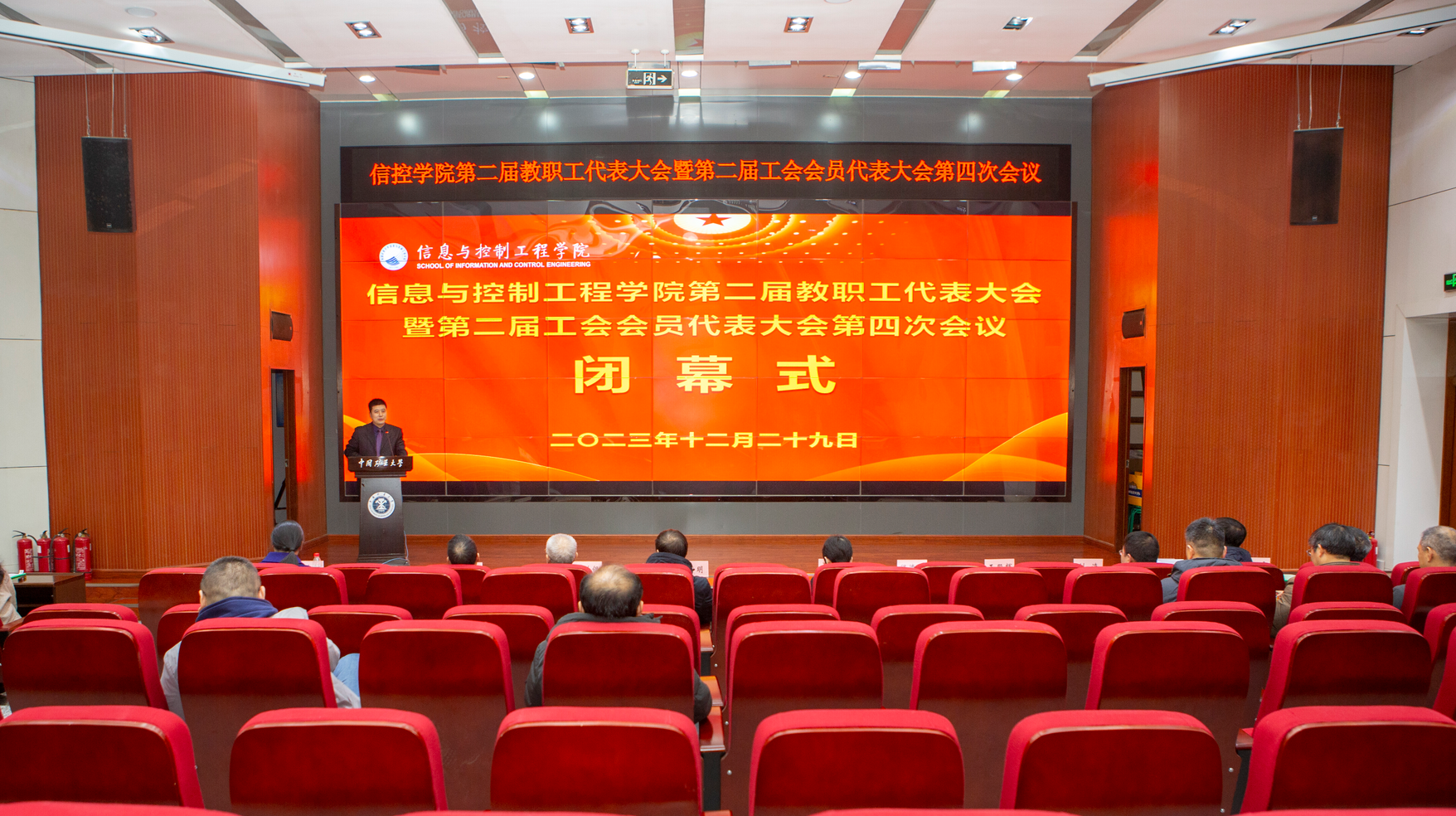 程德强致闭幕词。他对全院教职工一年来辛勤工作和取得成绩表示衷心感谢。他指出,2024年是学院“十四五”规划深入实施的关键一年,学院将充分听取教职工意见建议,一体化推进学科、专业、团队建设,砥砺奋进、勇毅前行,推动学院各项事业再上新台阶、取得新成绩,为能源资源特色世界一流大学建设贡献更多的信控智慧和力量。
