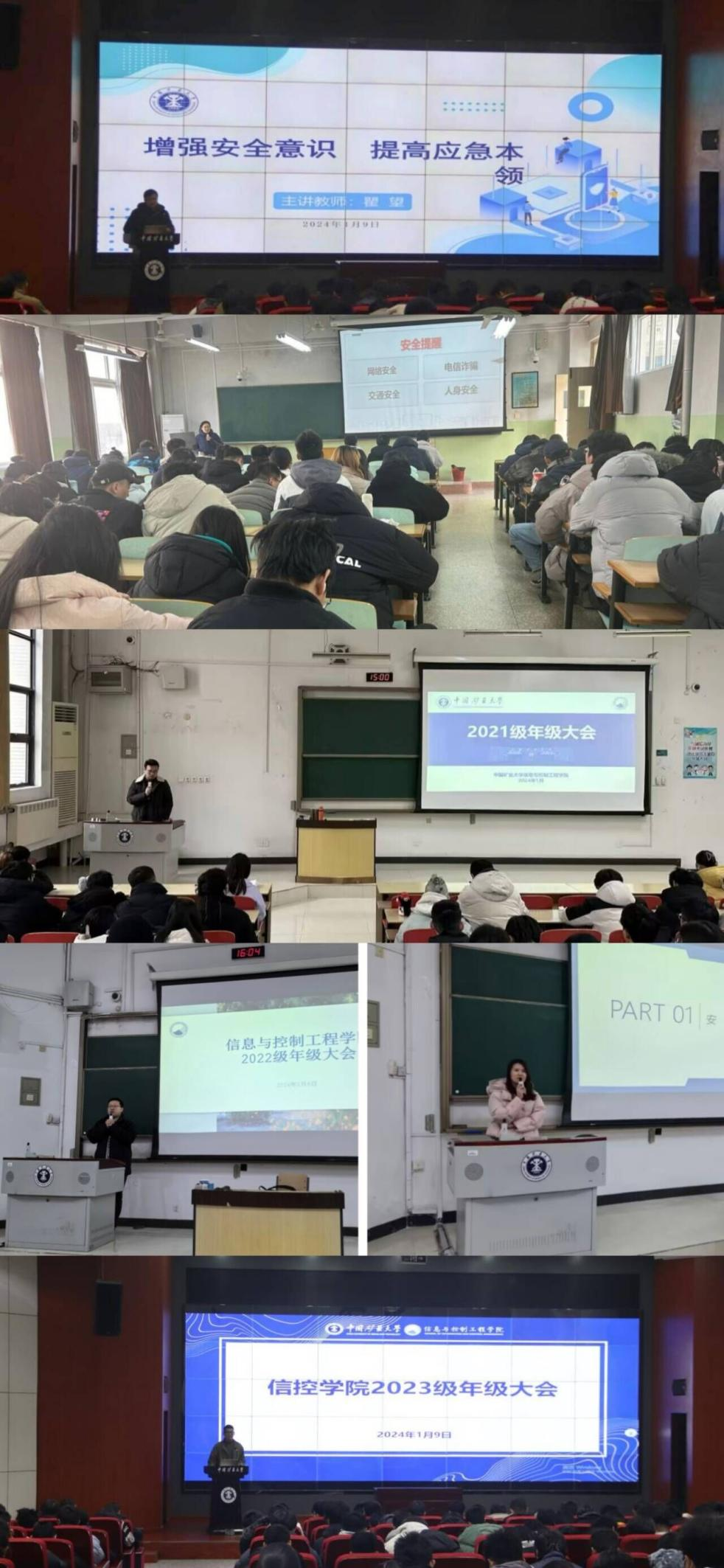 同时,本科生各年级、研究生分别在两校区召开年级大会,辅导员老师们就寒假期间的交通安全、网络安全、人身安全、谨防电信诈骗等方面进行了教育提醒。各年级辅导员老师还针对不同年级学生的发展阶段,组织开展了生涯规划和学业提升的相关指导。