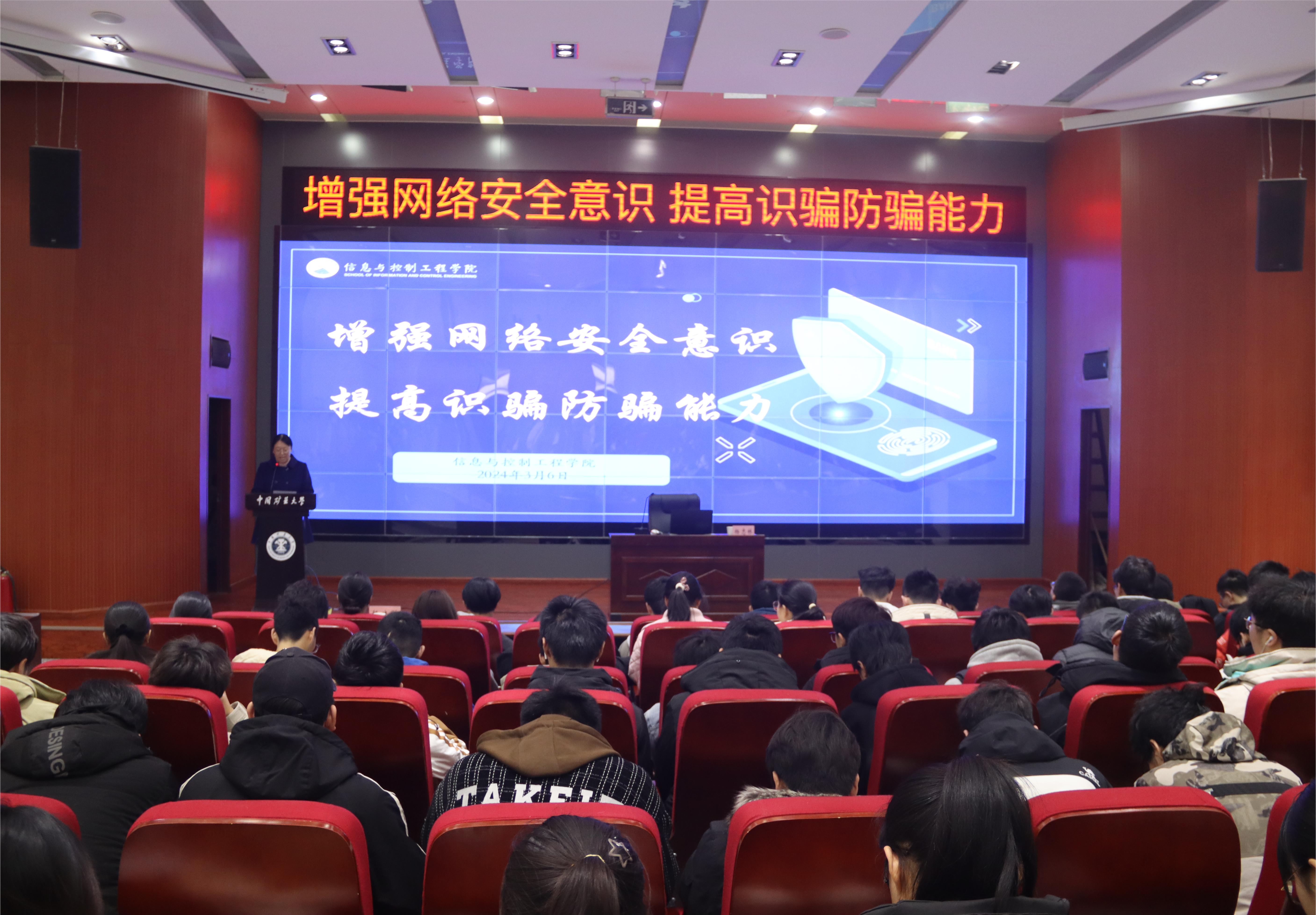 在信控楼A101报告厅组织开展了“增强网络安全意识,提高识骗防骗能力”主题安全教育活动。南湖校区警务工作服务站驻校民警杨志林受邀作安全教育主题讲座,珠山派出所民警殷晓彤、学院专兼职辅导员、学生代表共计300余人参加活动。活动由学院党委副书记翟文艳主持。