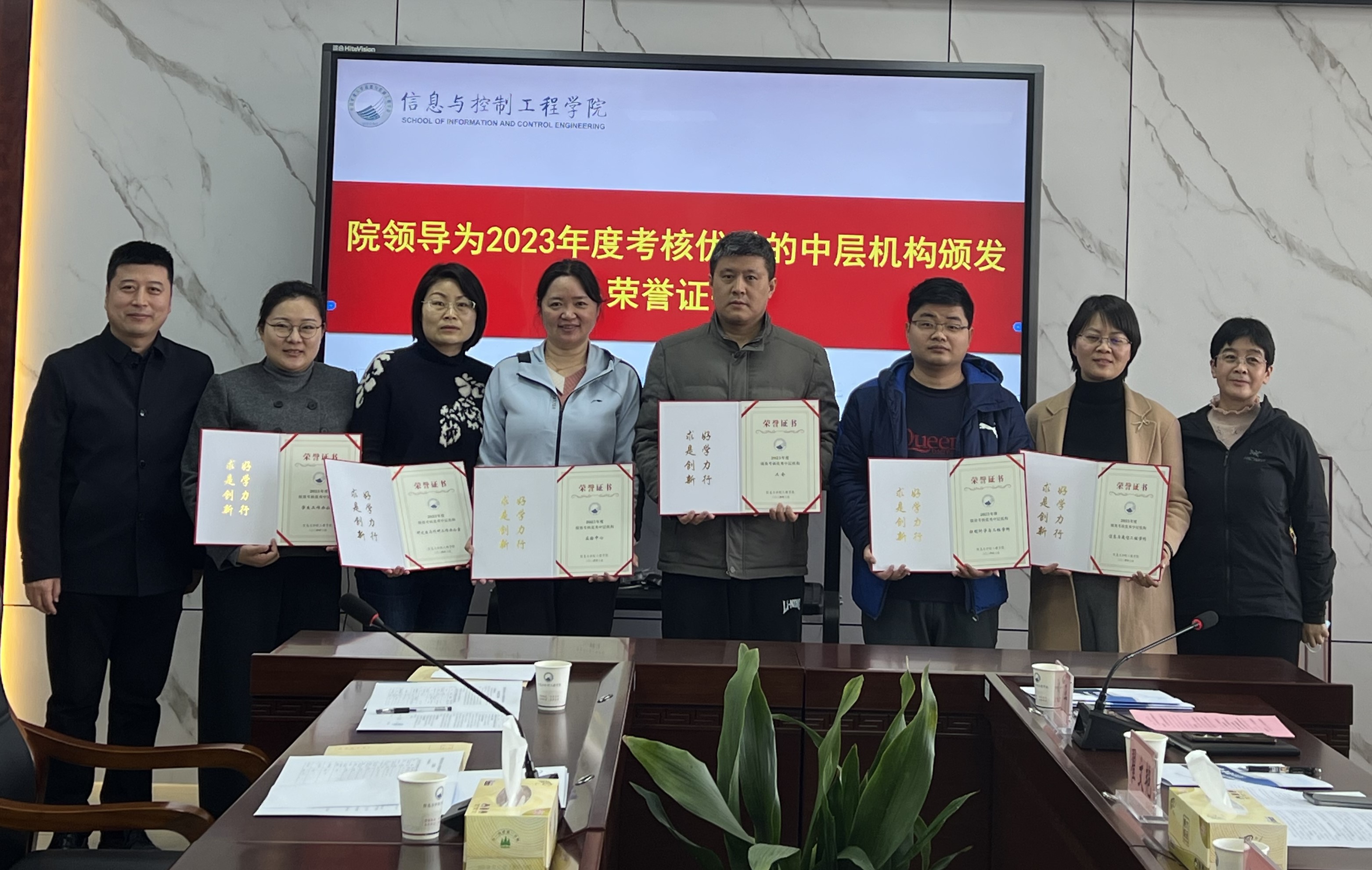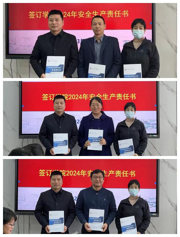 会上,程德强书记、王雪松院长为2023年度考核优秀的中层机构颁发了荣誉证书。学院主要领导与分管领导、分管领导与中层机构负责人分别签订了2024年度安全生产责任书。学院主要领导、分管领导与中层机构负责人签订了2024年度考核目标任务书。