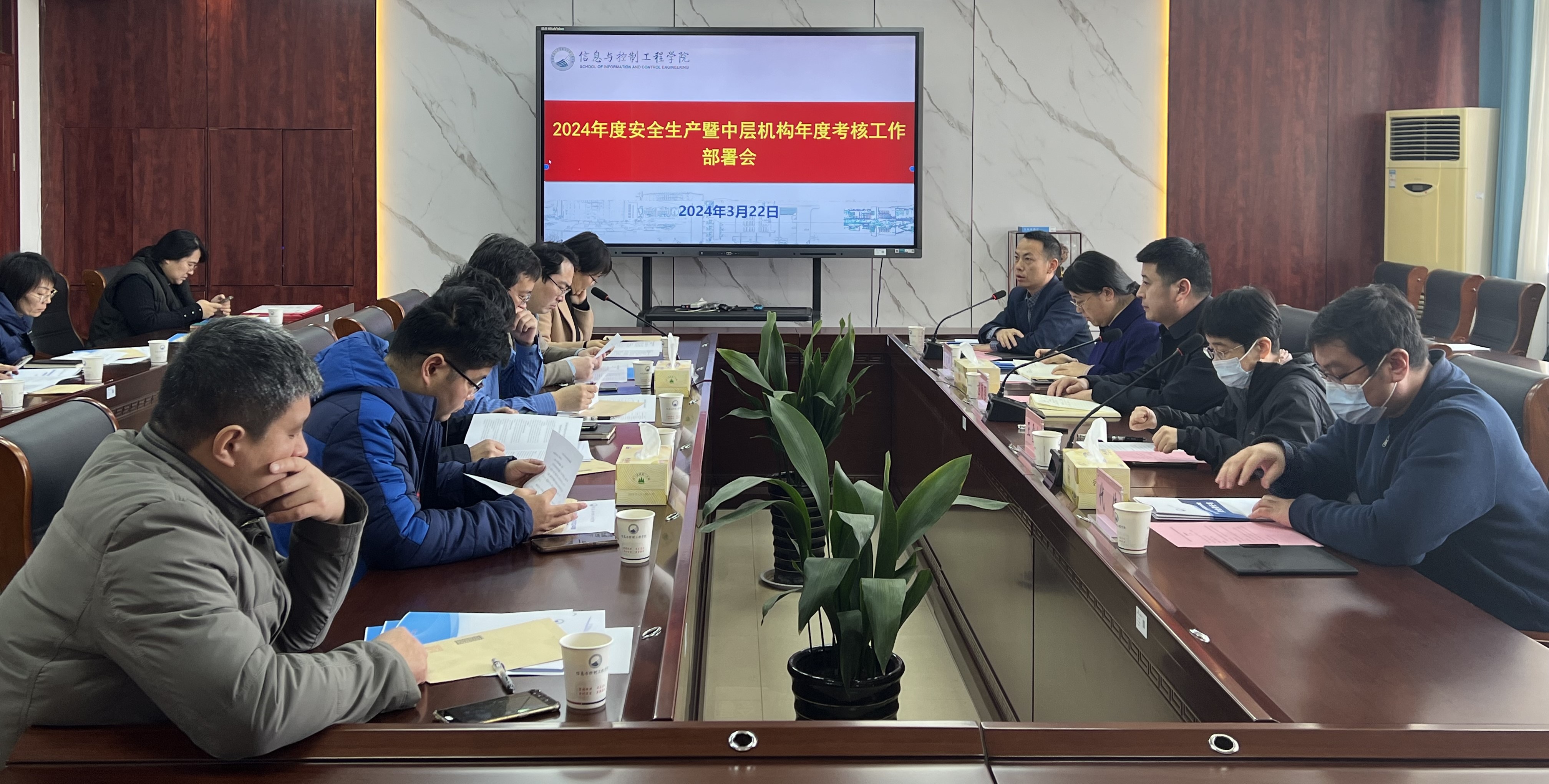 在A311会议室召开了2024年度安全生产暨中层机构年度考核工作部署会。在校的全体院领导、学院中层机构负责人参加了会议。会议由副院长陈平主持。