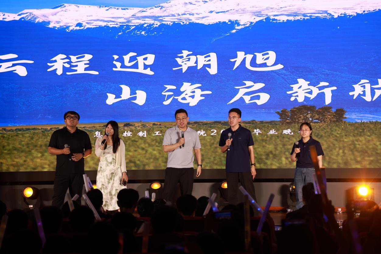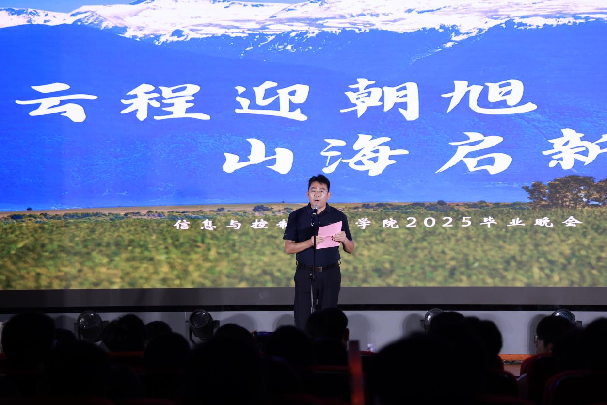 “云程迎朝旭,山海启新航”2025届毕业晚会在信控楼A01报告厅举行。学院党委副书记孙云霄,副院长陈平,学生工作办公室主任管钰,毕业班辅导员祁昊宇、李非、王晨及各年级辅导员参加晚会,与2025届毕业生欢聚一堂。