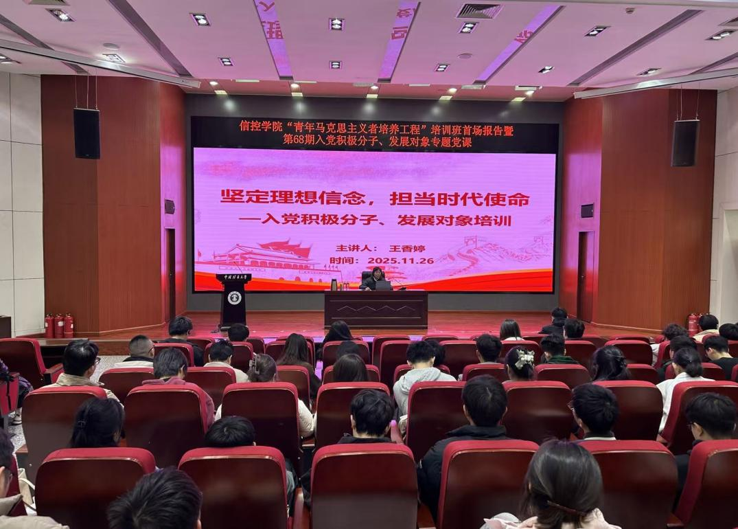A101报告厅举行。党课由学院学工办主任管钰主持。2025年院青马班学员和第68期全体入党积极分子、发展对象参加学习。