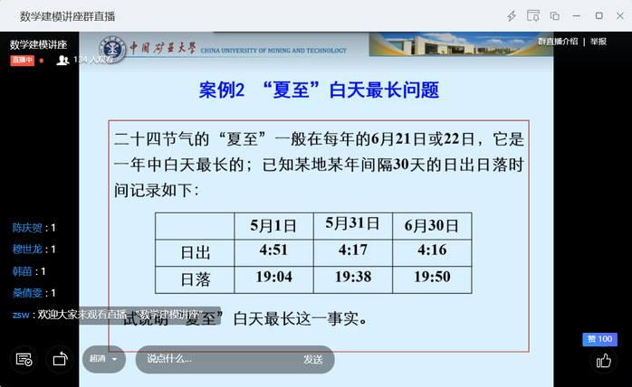 团委科创中心特别邀请数学学院周圣武教授在钉钉直播平台面向全校同学举办了线上SEA论坛——数学建模讲座,讲座共吸引了来自各学院180余名同学的聆听。