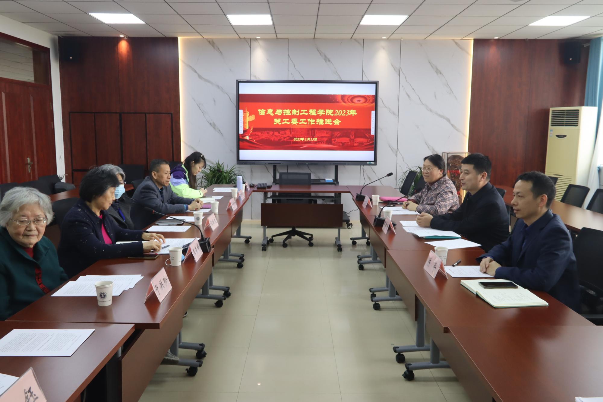 在A311会议室召开2023年关工委工作推进会。学院党委书记程德强,关工委常务副主任王香婷,学院党委副书记、关工委副主任翟文艳,副院长陈平,以及关工委委员参加会议。会议由关工委副主任、学院党委副书记翟文艳主持。