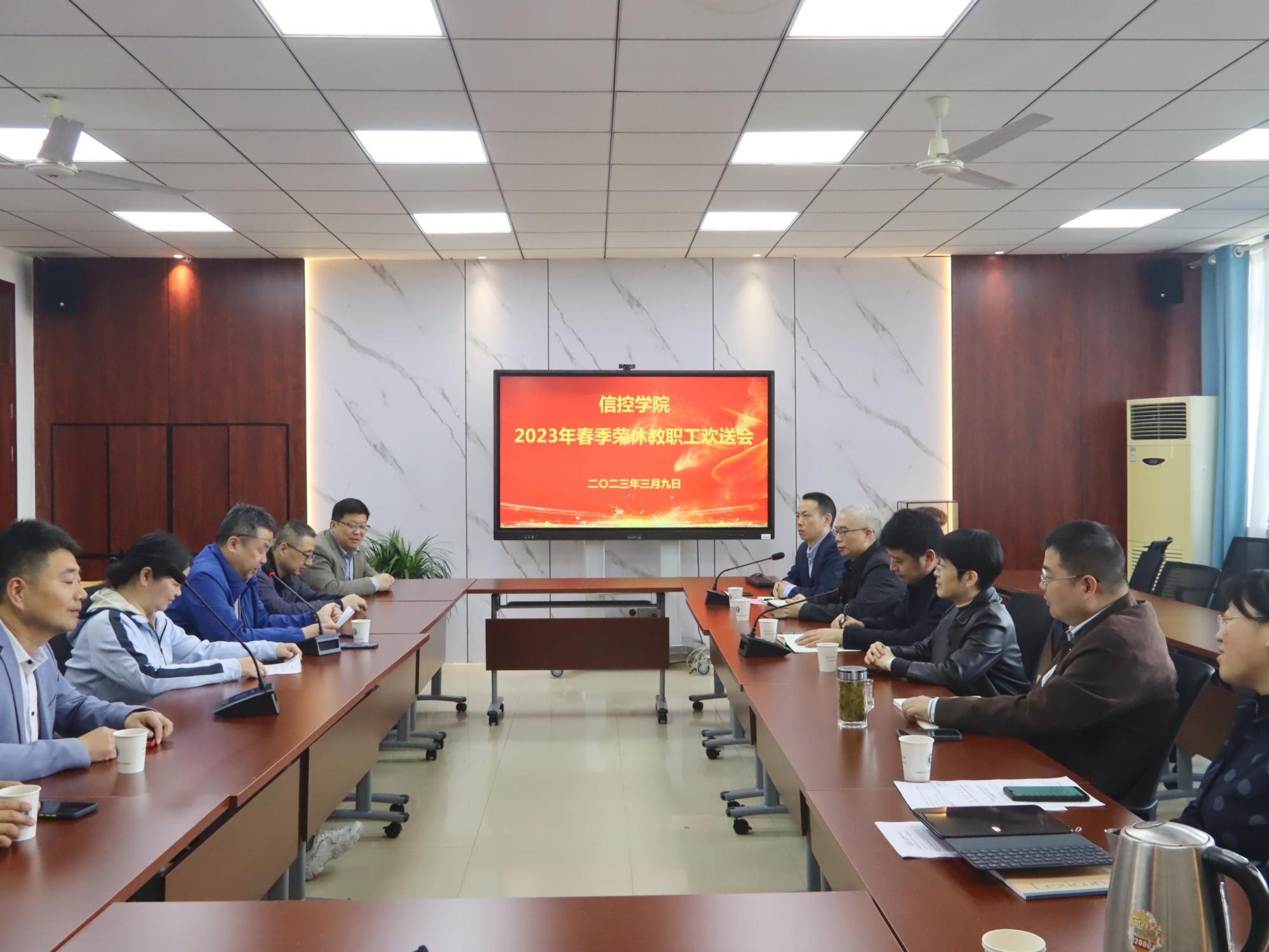岁月染芳华,桃李郁芬芳。为感谢退休教职工对学院改革与事业发展作出的积极贡献,切实增加教职工的归属感和职业荣誉感,学院于2月28日、3月9日分别举行了2023年春季荣休教职工欢送会。学院党委书记程德强,院长王雪松,党委副书记翟文艳,副院长李世银、刘海、陈平等全体领导班子出席会议,即将退休的胡忠满、邹南两位老师以及学院教学管理办公室、实验中心全体同志参加会议。会议由副院长陈平主持。