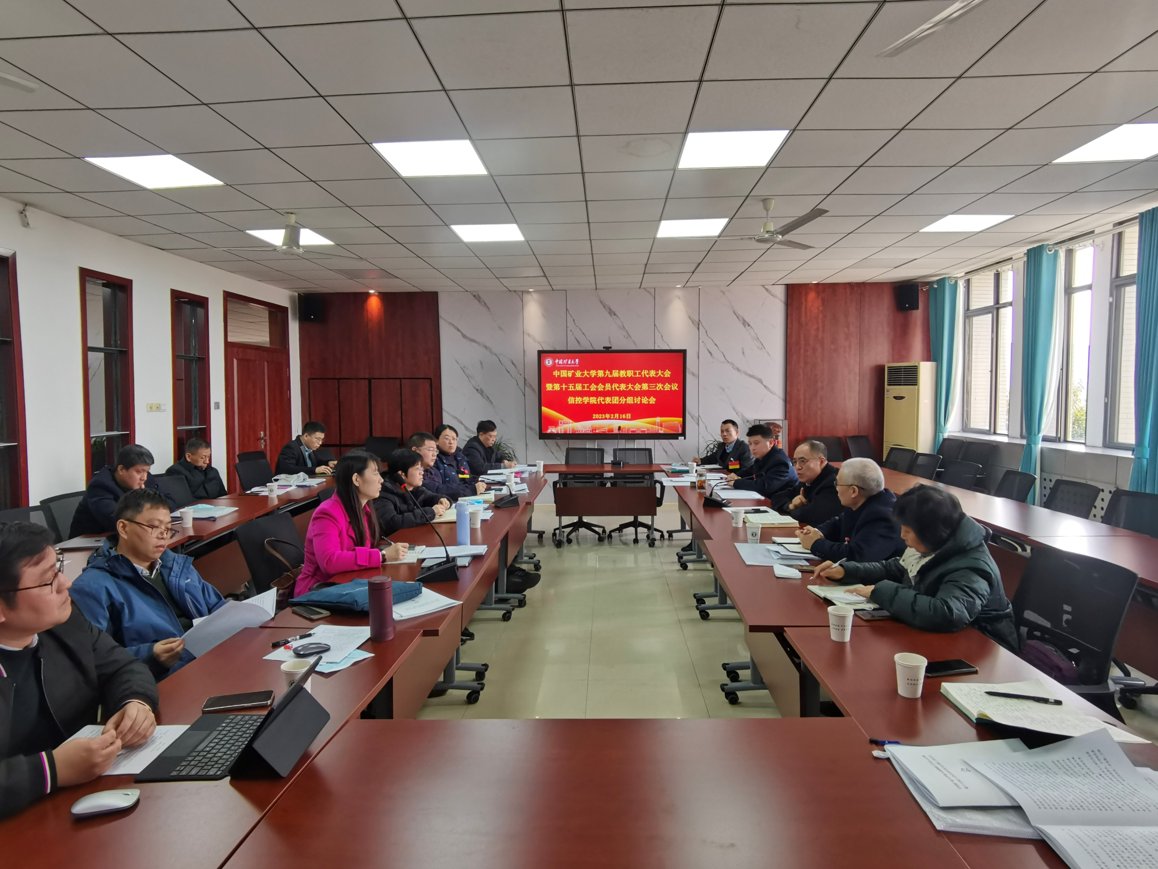 代表团在A311会议室举行学校第九届教职工代表大会暨第十五届工会会员代表大会第三次会议分组讨论会。副校长李强到会听取代表意见建议并讲话,拷贝漫画