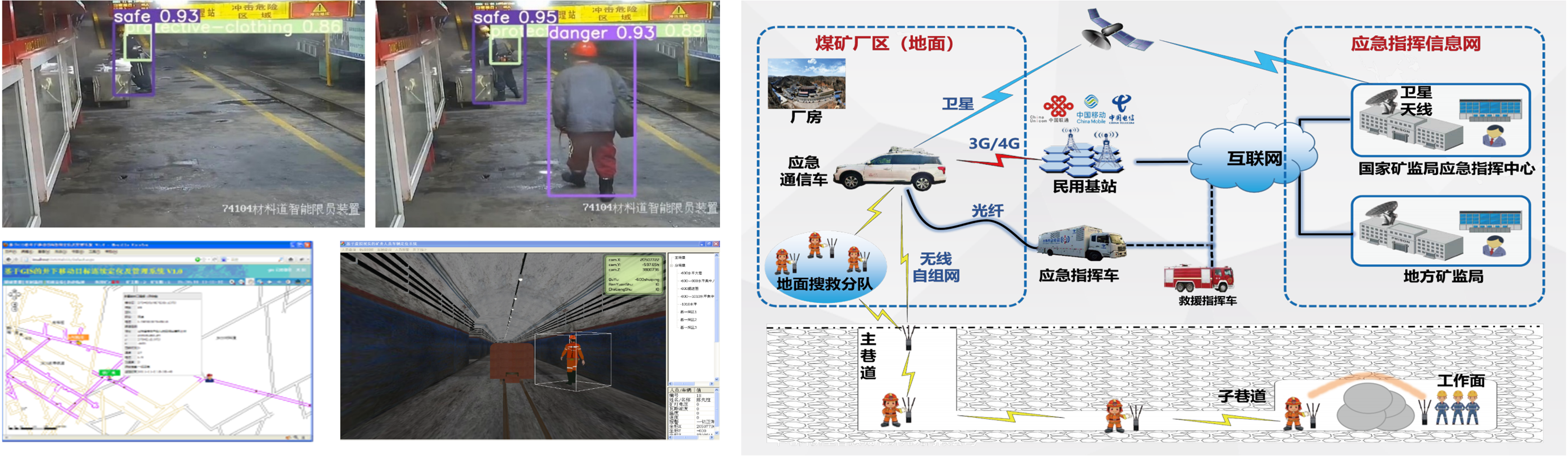 主要围绕智能穿戴设备、人员定位系统、人员行为分析和人机交互系统等开展技术研发,综合人员定位、双向数据传输、报警及信息显示等功能,实现移动目标(人员、设备)的精确定位与管理,为矿工自救及井下施救提供信息支持。